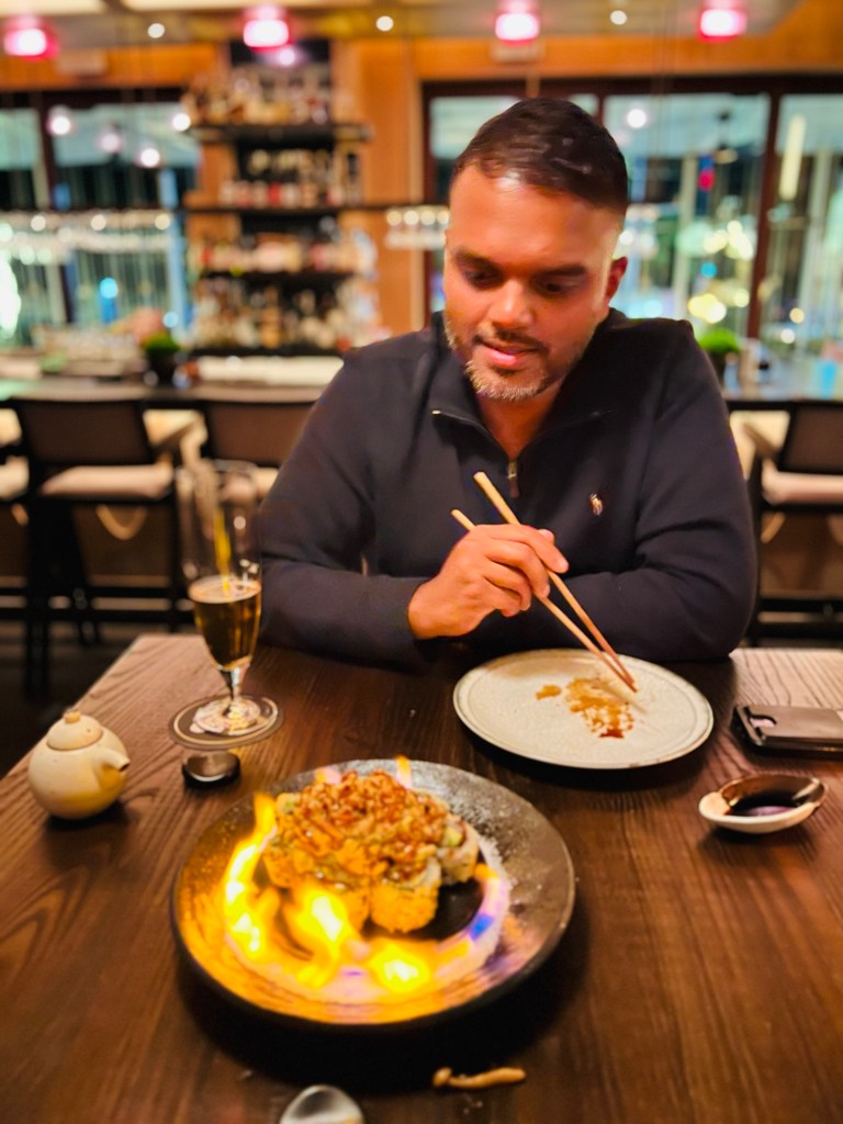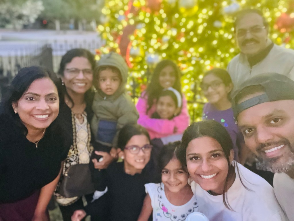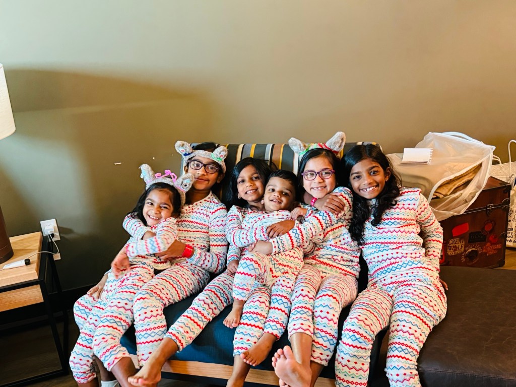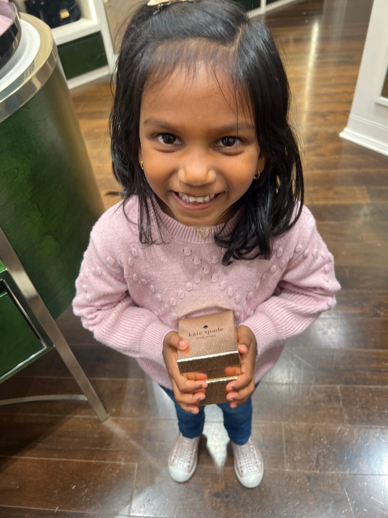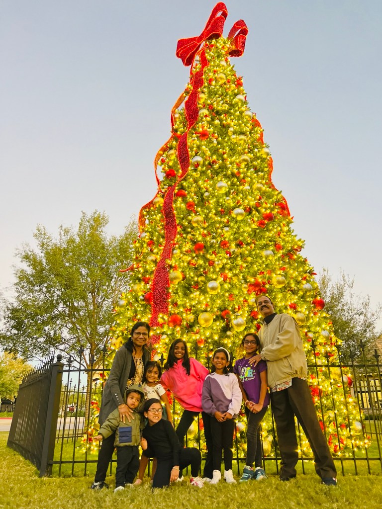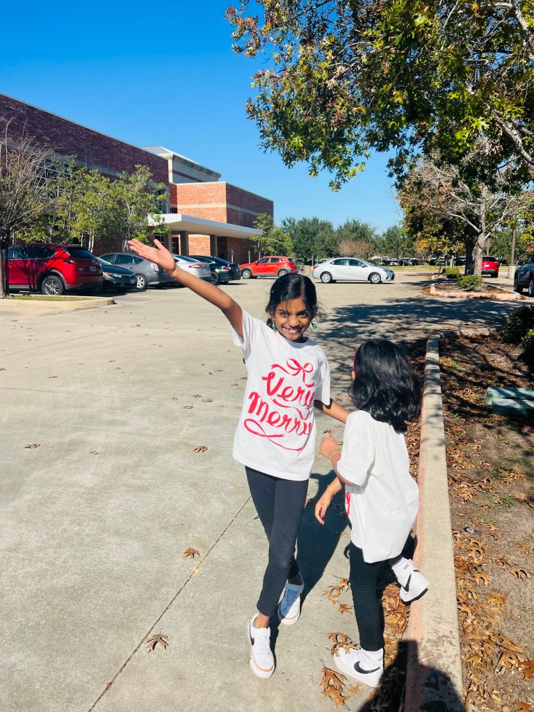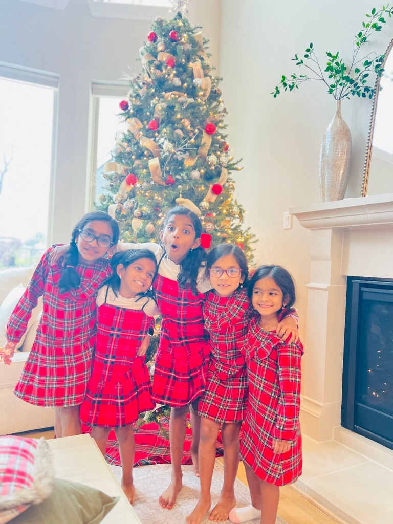 Enjoying Kindergarten Thanksgiving lunch with our favorite kindergartener! ❤️Later that day, we enjoyed an impromptu family hang at the neighborhood park. The gangs all here minus my brother! The weekend before Thanksgiving, we all headed to the new Great Wolf Lodge in Webster to celebrate Alora’s birthday! Matching Christmas pajamas will always be my favorite tradition with these kiddos! The following Monday, the girls were dropped off at their favorite art (day) camp in Pearland and I took my sweet boy to B&N for his first time! It was very short live – he lasted 8 minutes total before he started pulling all the books off the bookshelves….so we left! 🙃🫠It’s a good thing he’s so cute! Later that evening, after we played with a few neighborhood girlfriends, Jacob headed to basketball, Levi headed to Ammachi’s house, and I took the girls for a little GNO! 😆The next morning, we had a little brekkie date after art camp drop offs and for some reason I felt like the third wheel! 🤨We spent lots of afternoons at Appacha’s house enjoying the sunset on the back porch and the swing. 🥹😍The girls are finally old enough to really help decorate the tree and I was so proud of what a great job they did Wednesday night! On Saturday morning, we spent lots of time on the couch napping and working on projects. It was the perfect lazy Saturday! On Saturday evening, after Betsy’s birthday dinner, we got hot chocolate for the girls and drove around taking in all the Christmas lights in River Oaks. My sweet girls!!! Love them so much! Per tradition, Elfie flew in on December 1st with goodies and the girls were beyond happy! Wrapped up a wonderful week with date night at one of our favorite sushi spots, Azumi!