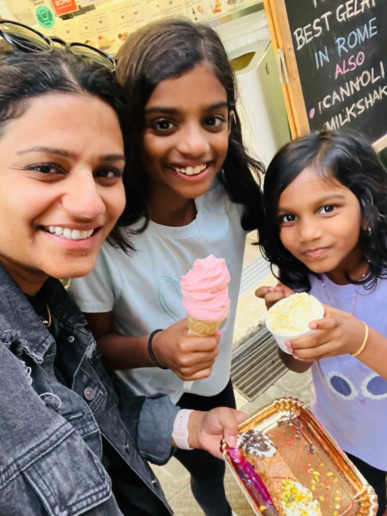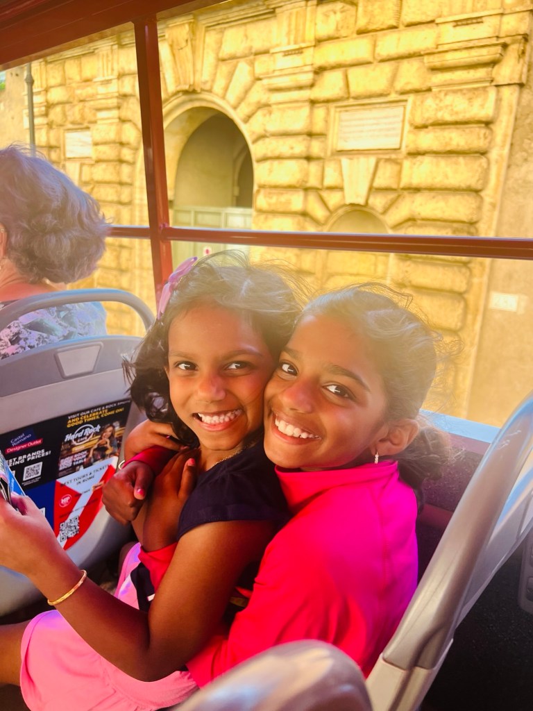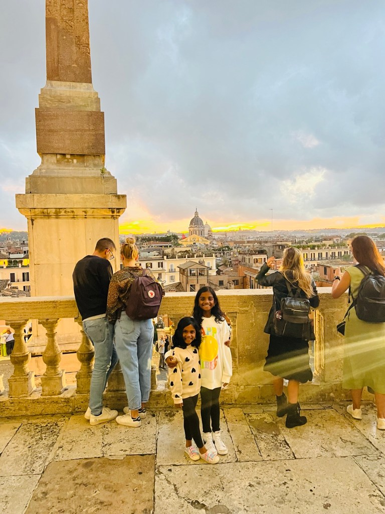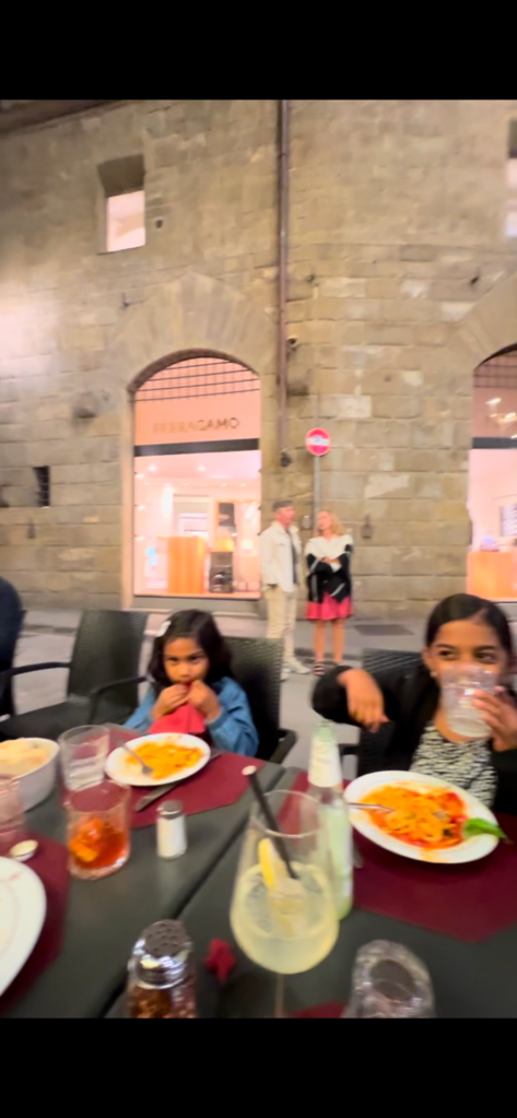In October we spent the girls’ fall break in Italy! It was a whirlwind readjusting to normal life but it was SO WORTH IT! We had a wonderful time away visiting Rome, Florence, and Venice.My parents watched this sweet boy for the week we were away! Love these two! They are the very best travel buddies! 😍we flew into Paris on our way into Rome and this was on our layover after a 9 hour flight. They are seriously just the best and easiest travel buddies! They are truly the happiest when they’re traveling and I just love that! ☺️As soon as we landed, we took a local train/subway and walked a few blocks to our hotel, checked in, and set off to explore!FIRST STOP: Gelato, obviously. 😉SECOND STOP: The Spanish Steps! We headed here right at sunset and were able to catch a beautiful sunset. We were hoping to catch dinner and drinks with a view at the restaurant right next to the Spanish steps but no luck with reservations! Afterwards we ate a quick bite and walked home to turn in for the night. The following morning we enjoyed breakfast at the hotel!😊We headed out for the day and quickly realized we’d be better off getting day passes for the hop on/off bus. We grabbed those tickets and headed off to see…The Colosseum! The girls, especially Ava, were the perfect age for this! 😍One with all of us (minus our sweet bebe)☺️It’s a shame they don’t get along that well…😋😍The bus rides were probably their favorite part of the day! 😂We enjoyed pizza by the pound at a local place followed by more gelato, of course! 😉We got back on the bus and hopped off at the Spanish steps. We tried our luck at the rooftop restaurant but stuck out again! We couldn’t stay too mad because at least we got to enjoy the view again!We headed home again but this time stopped for pasta on the way home. I think it’s safe to say Aaliyah loved her pasta! 🍝 The next morning, we grabbed a cappuccino and explored some more. Needless to say, I LOVED IT! Walking around a new city with my people drinking coffee and soaking in the culture is my favorite way to spend the day!Then we hopped back on the bus and did a little more sightseeing!My sweet girl! 😍🥰Side story: Aaliyah ran straight into a lamppost as we were walking out and hit her forehead pretty hard. You would’ve thought Ava was the one that got hurt! The way she rushed to Aaliyah’s side, comforted her, and even tried to pick her up to carry her just made my heart so happy. It’s something I don’t ever want to forget! 👯♀️ 🥹We walked around a bit more, enjoyed the tourist attractions, and the beautiful views of just everyday Italian living! Then we headed back to the hotel and grabbed our bags…And took a train to…Beautiful FLORENCE!