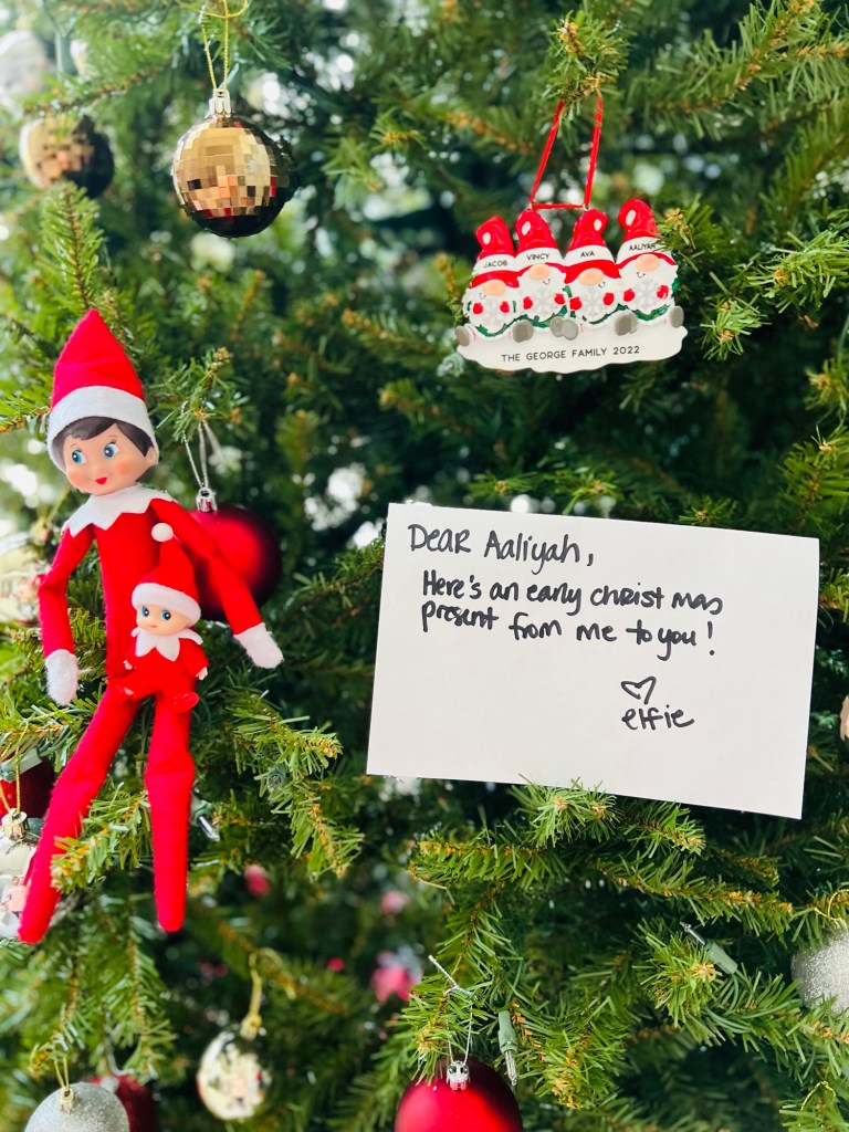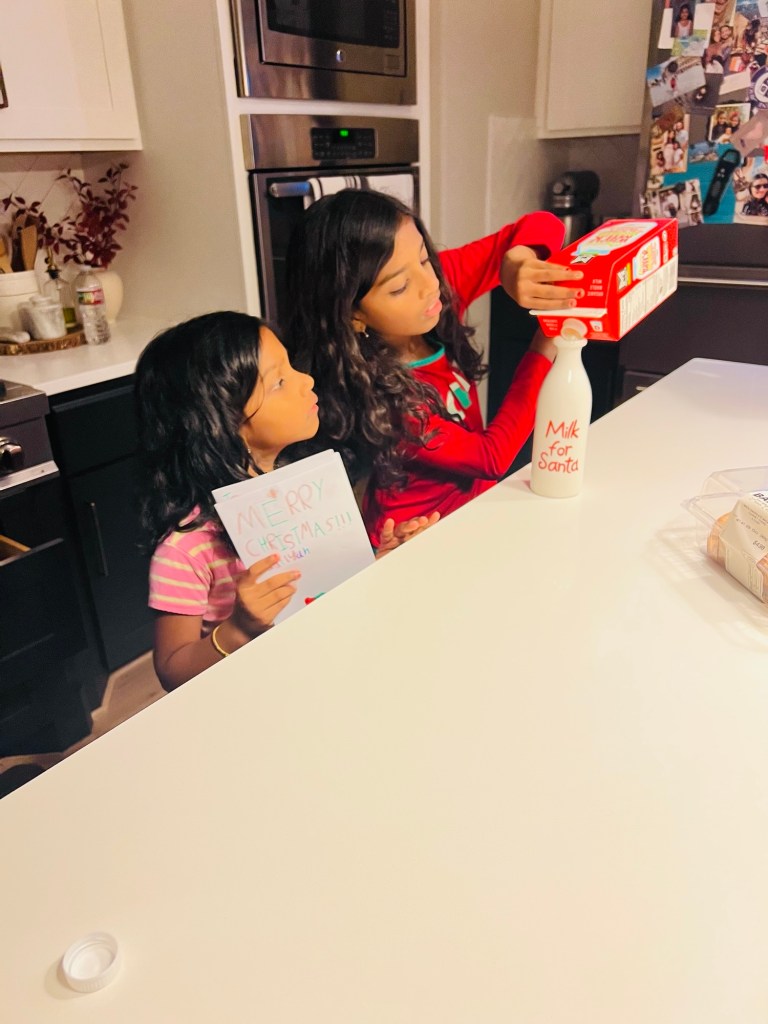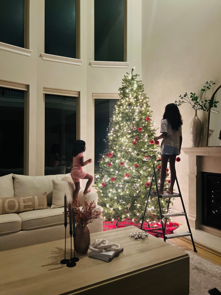 This was the first year Ava participated in the Elf on the Shelf shenanigans and it was so much fun watching her create little adventures for Aaliyah! I did help create some of the magic occasionally 😂look at that smile! 🥹Everyone’s off of their normal schedule thanks to the holidays so Levi woke up extra early one morning and got to join me for my quiet time by the fireplace! I guess it was a little too quiet for him to stay awake! 🥰 The sunrise from these windows always makes me so happy! The pretty tree next to it is just icing on the cake imo, I’m so grateful!☺️ We finally decorated our tree the night before Christmas and I think a tradition is born! Afterwards, we all wrote down our highs from the past year and our goals going into the new year and shared with each other. Aaliyah’s was to get better at piano and Ava’s was to learn guitar. Before we went to bed we made sure to set out cookies and milk for Santa! the way Aaliyah is carefully monitoring Ava’s pour makes me giggle! And of course we watched yet another Christmas movie at the girls’ “movie theatre” 😂the credit card machine got me! This Christmas was filled with lots of performances! This picture is from the girls’ first Christmas dance recital! Ava was Mary in the church play! Aaliyah ended up being sick so she skipped the play and stayed home to snuggle with Jacob.